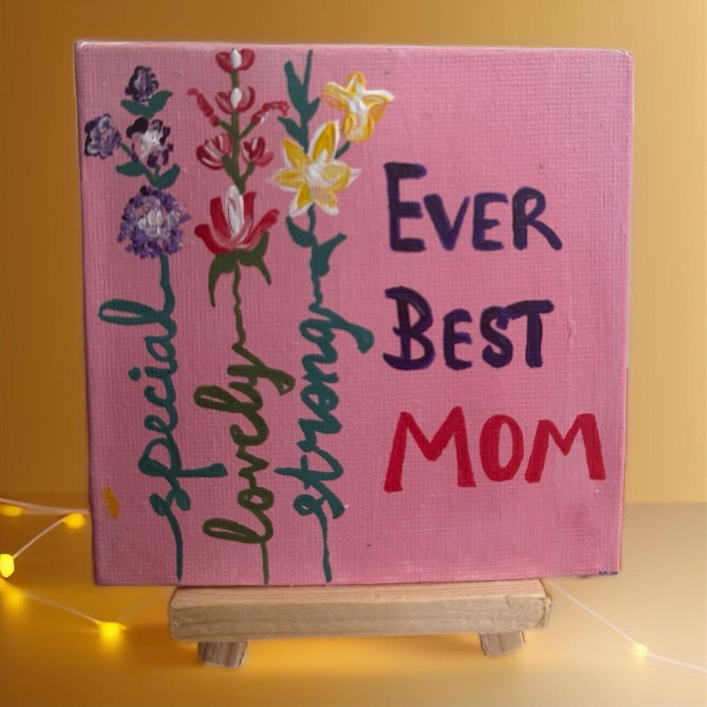 Celebrate your mom with this lovingly hand-painted mini canvas 🌸. Featuring delicate florals and the words "special, lovely, strong — EVER BEST MOM", this 4x4 inch canvas (0.2 inch depth) is a beautiful tribute to the queen of your heart 👑💐.